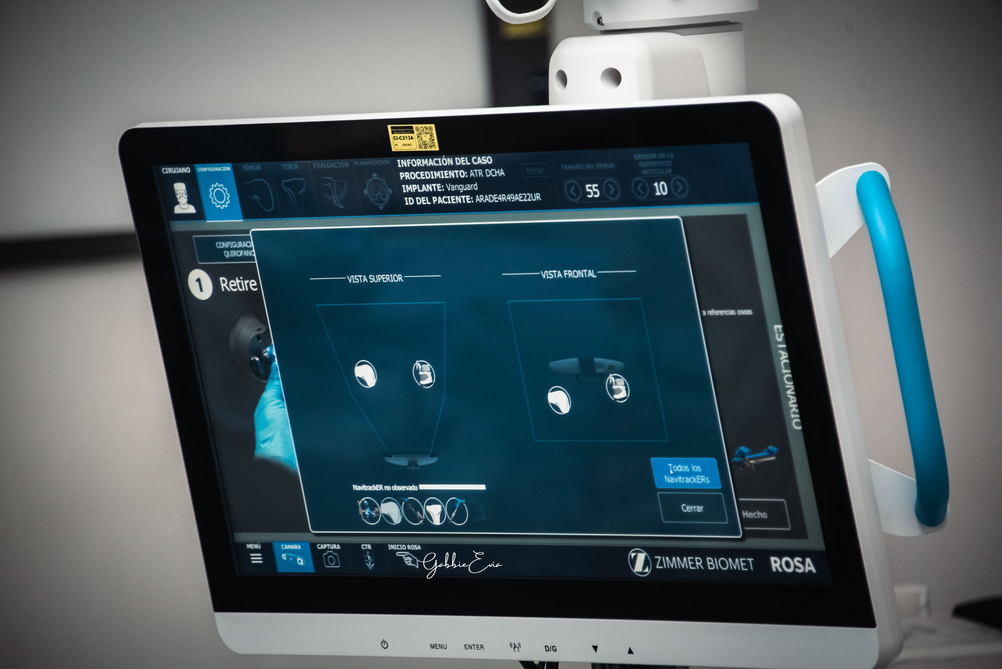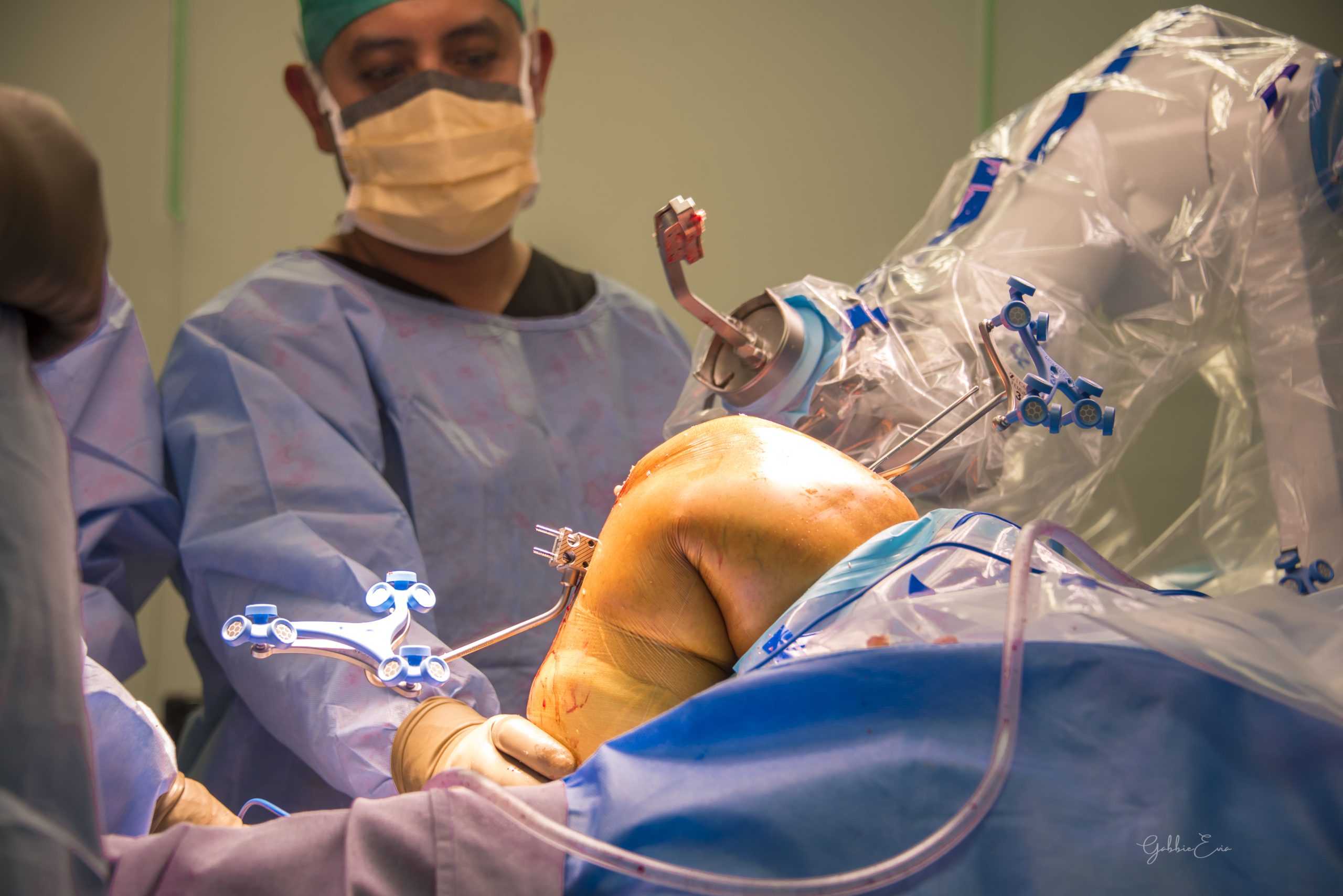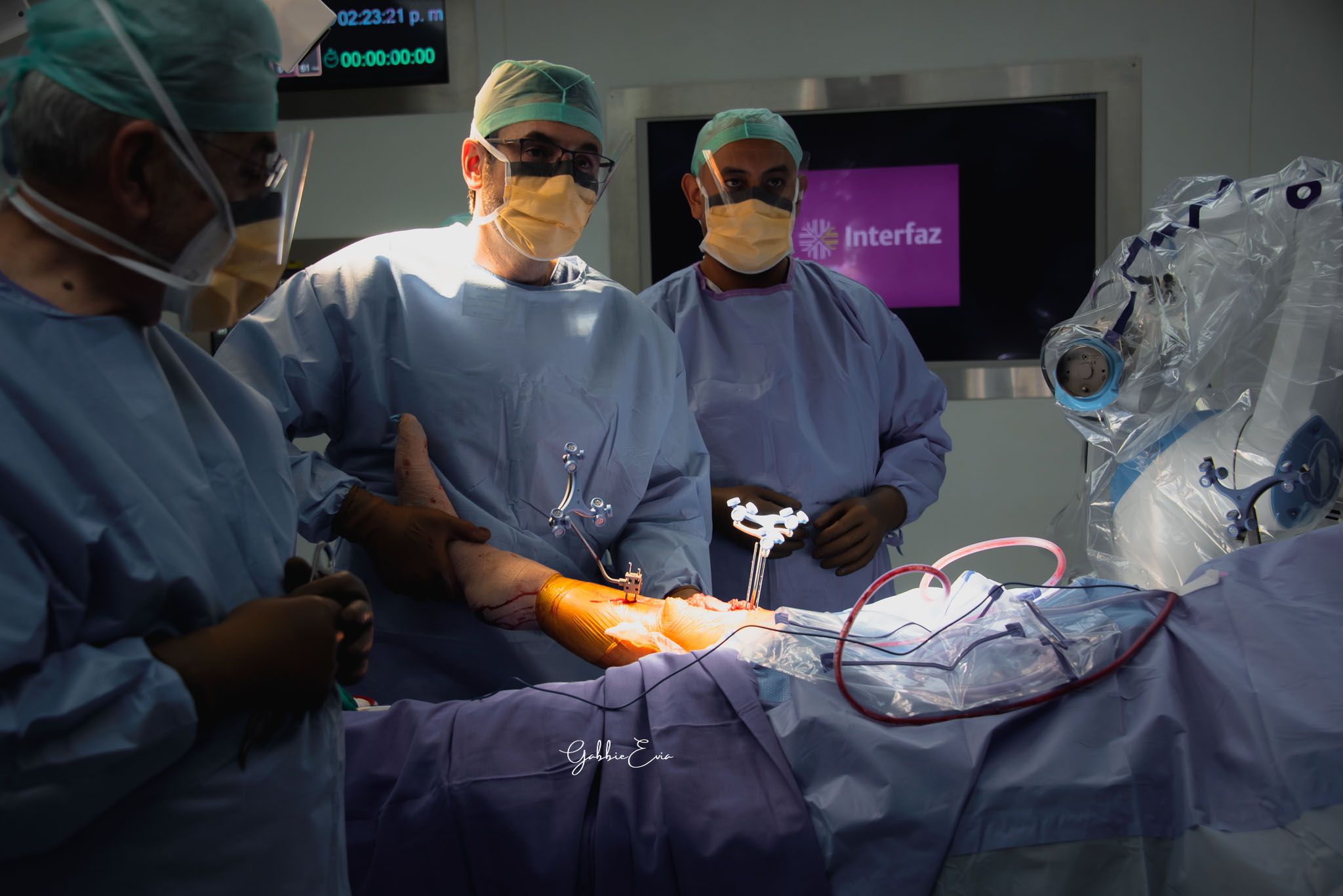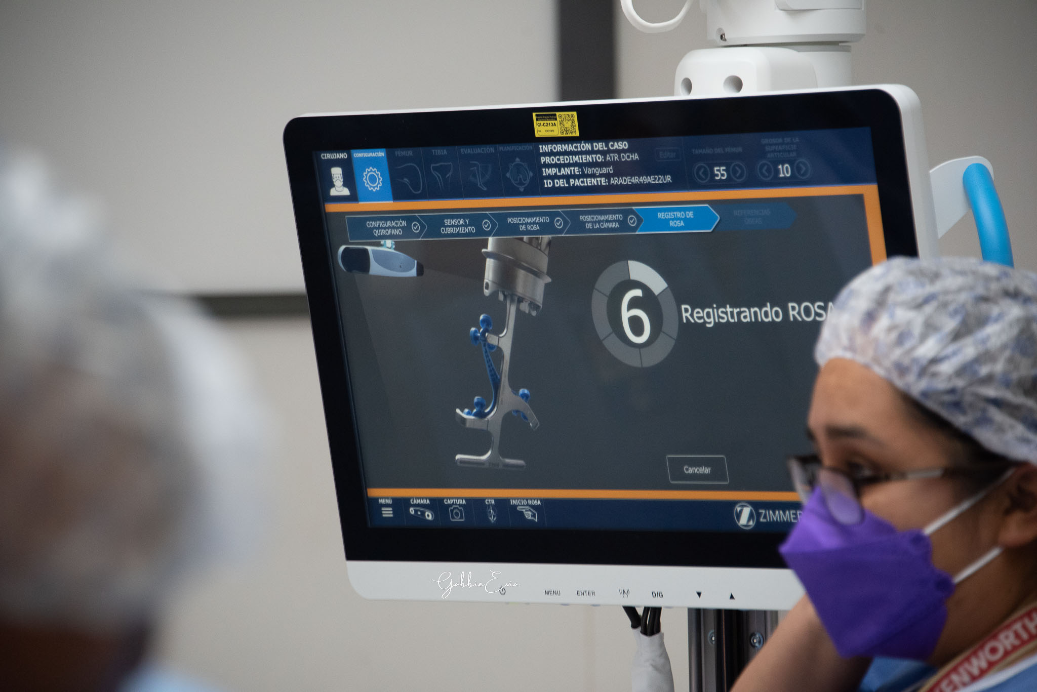 Trabajamos en conjunto con dos marcas de robots para asistir una cirugía de remplazo articular con base a la planeación y ejecución de la misma, que nos ayuda a tener una mejor precisión y mejora los tiempos de cirugía así como la recuperación del paciente, previamente programado y manejado por los médicos: