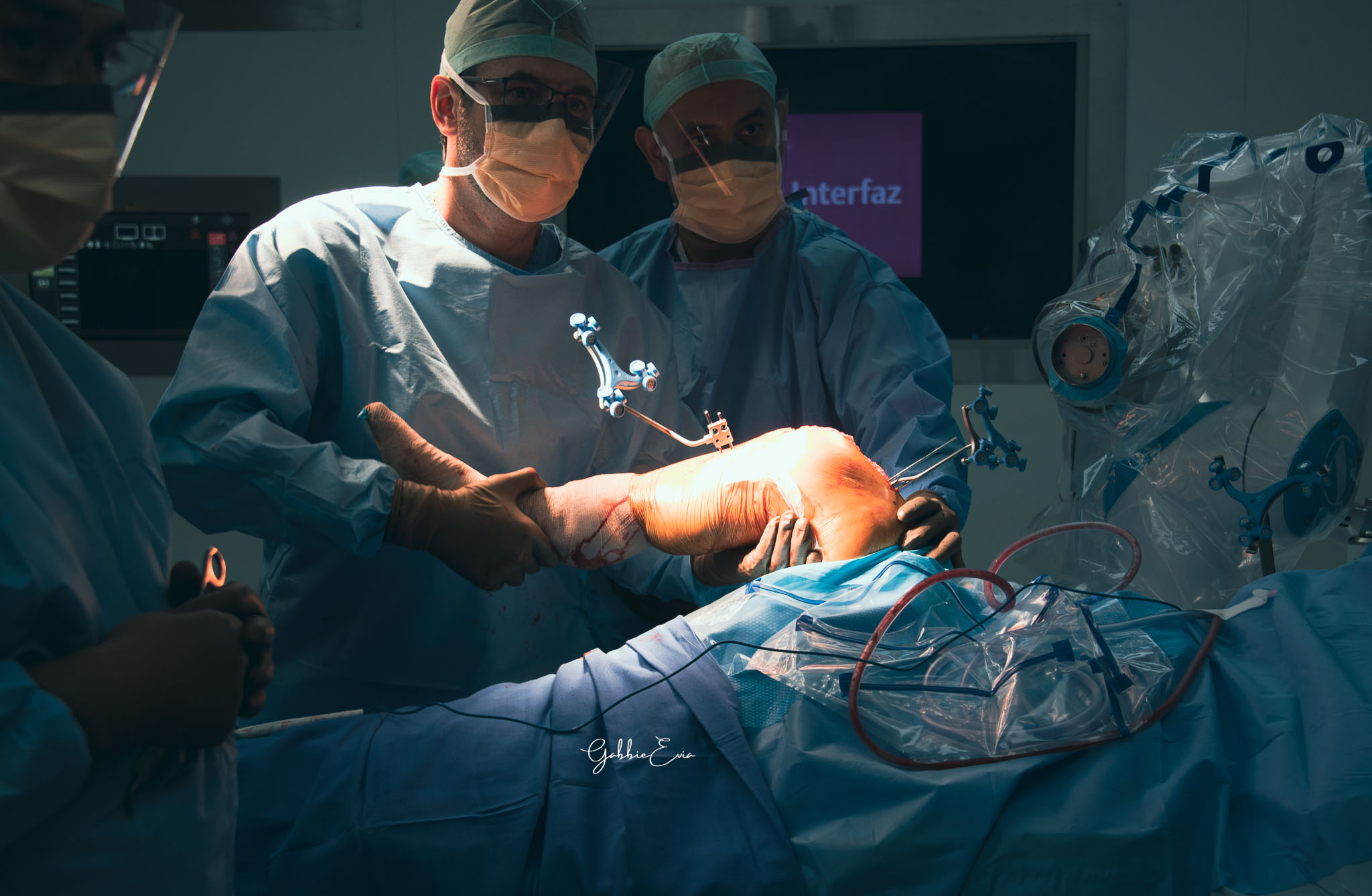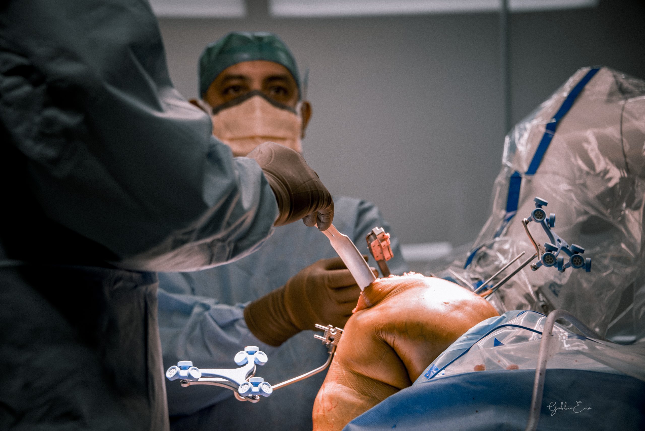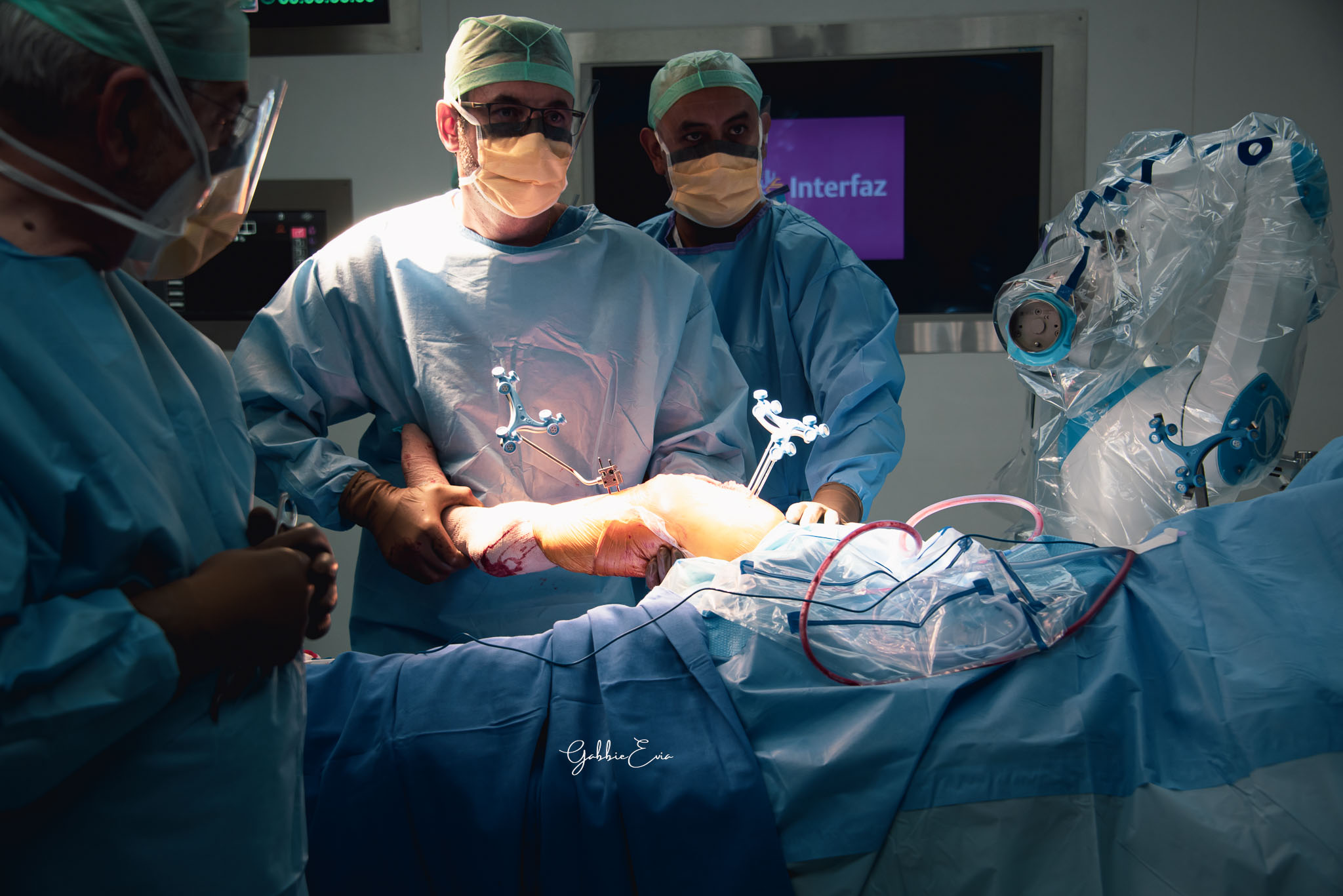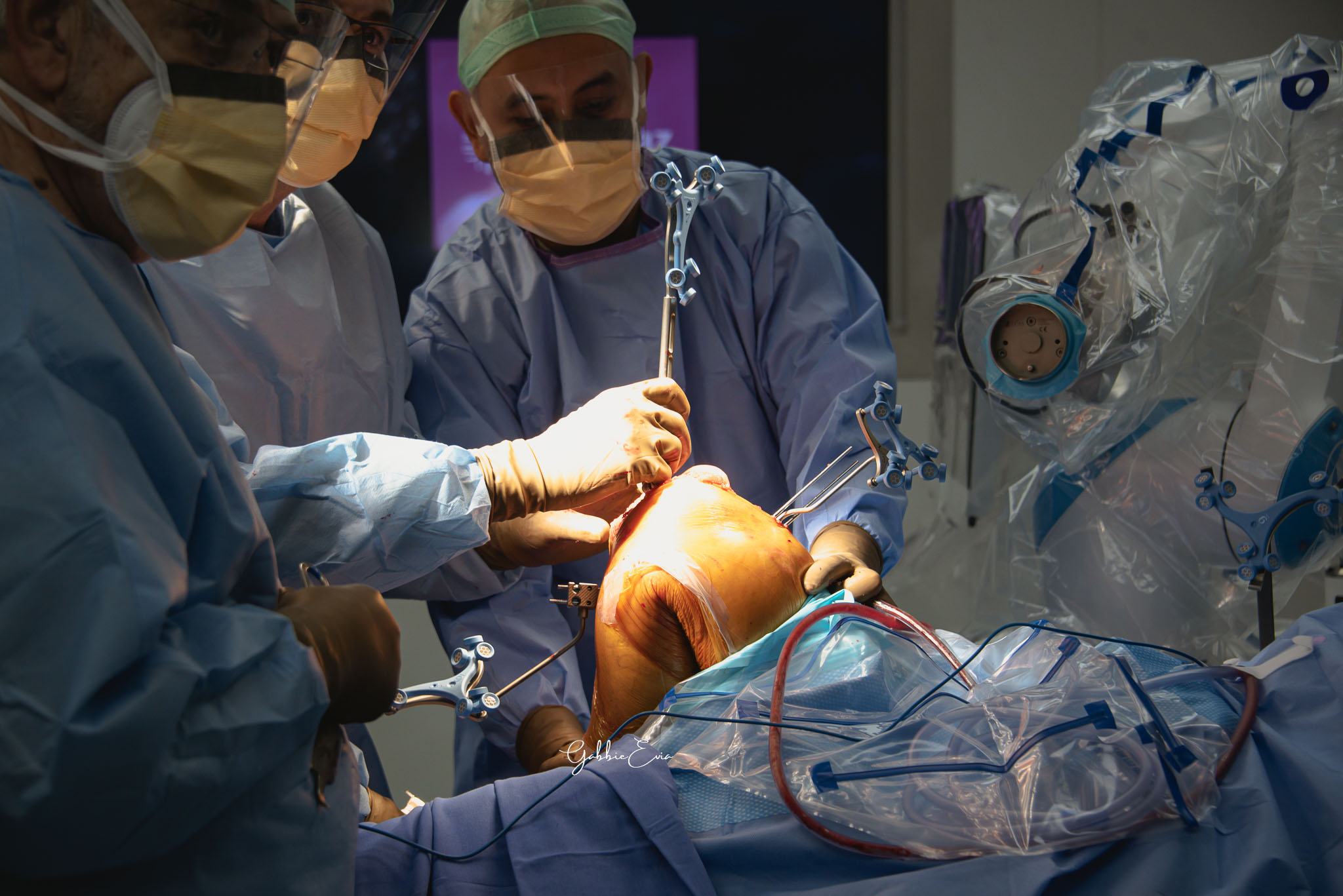 Trabajamos en conjunto con dos marcas de robots para asistir una cirugía de remplazo articular con base a la planeación y ejecución de la misma, que nos ayuda a tener una mejor precisión y mejora los tiempos de cirugía así como la recuperación del paciente, previamente programado y manejado por los médicos: