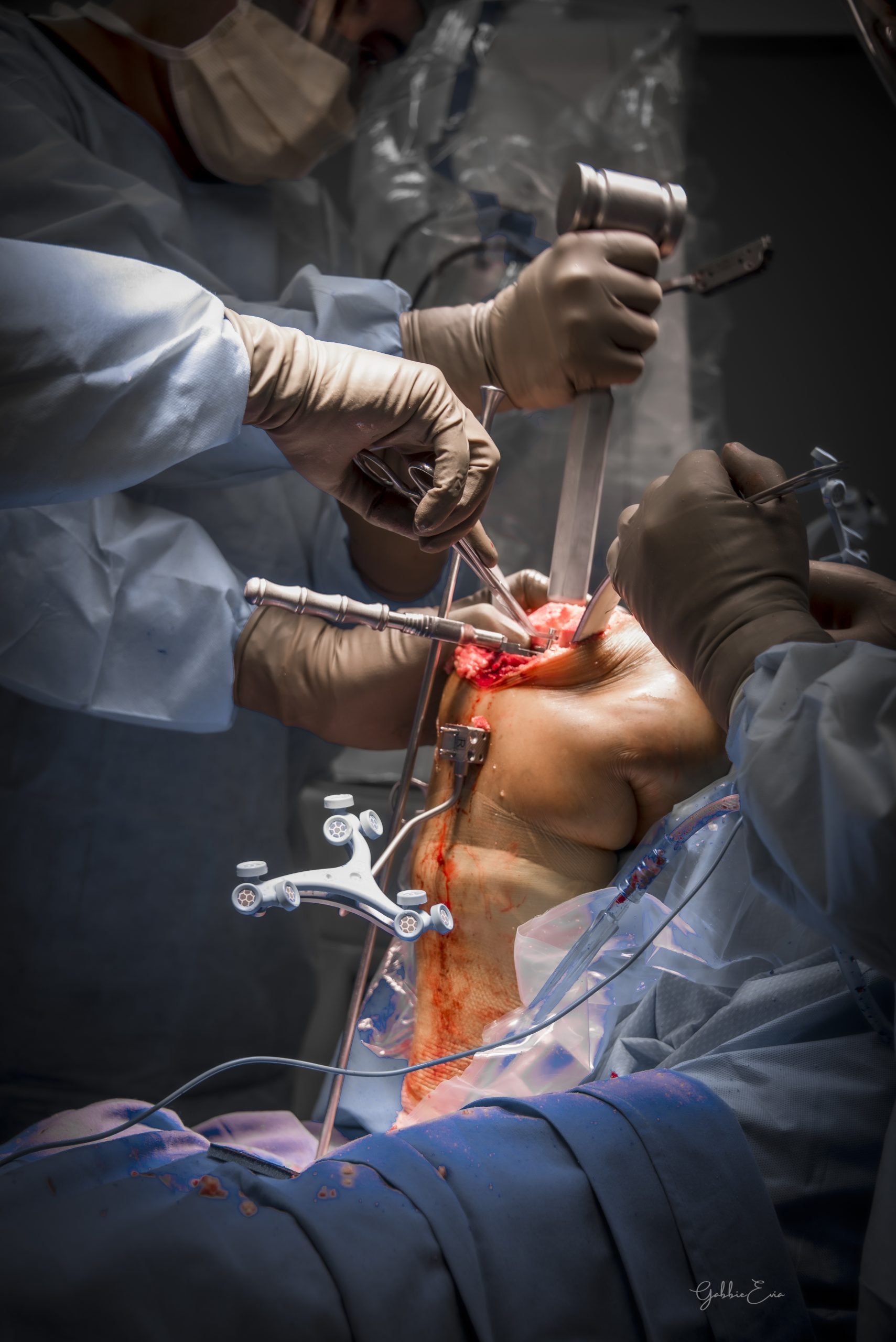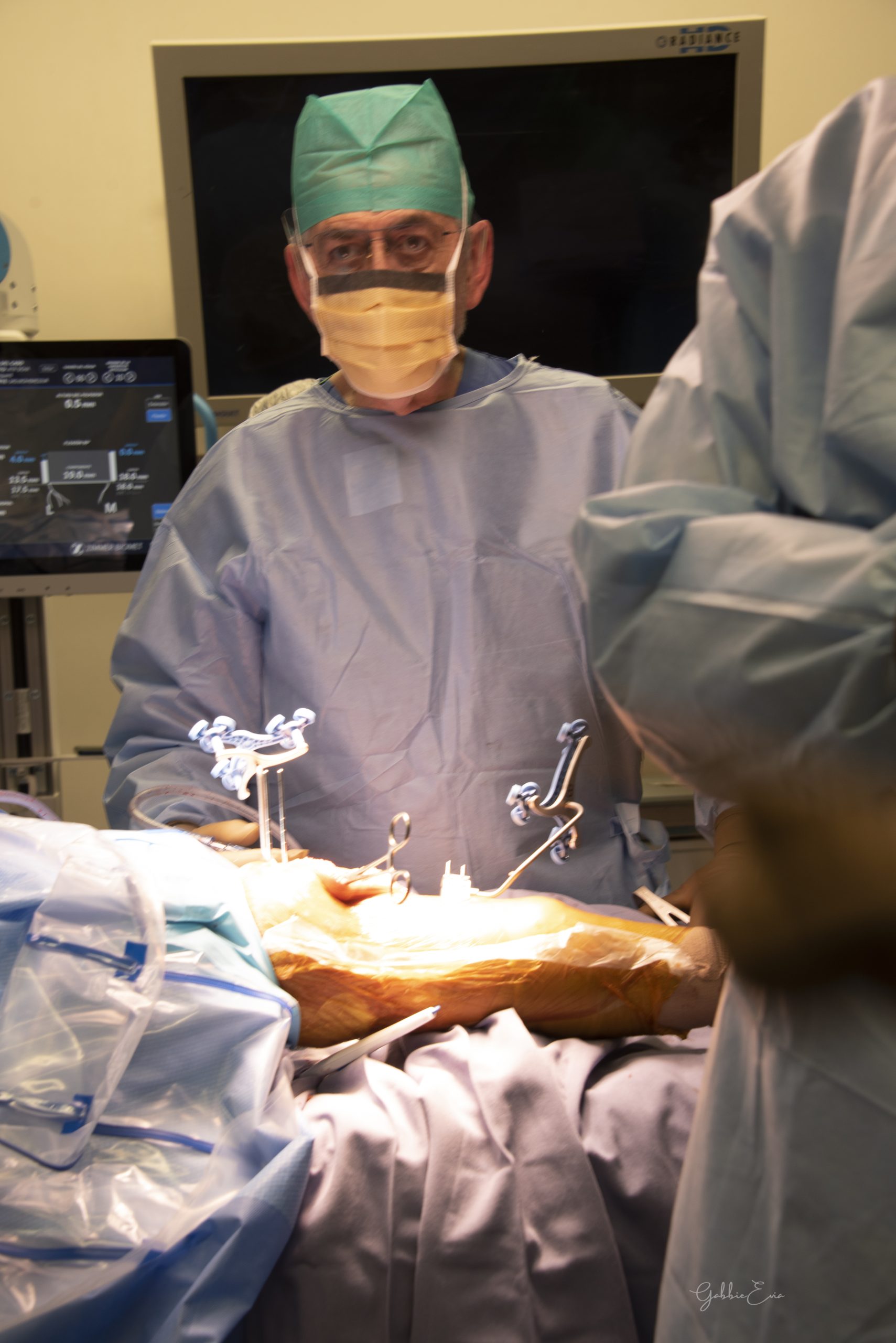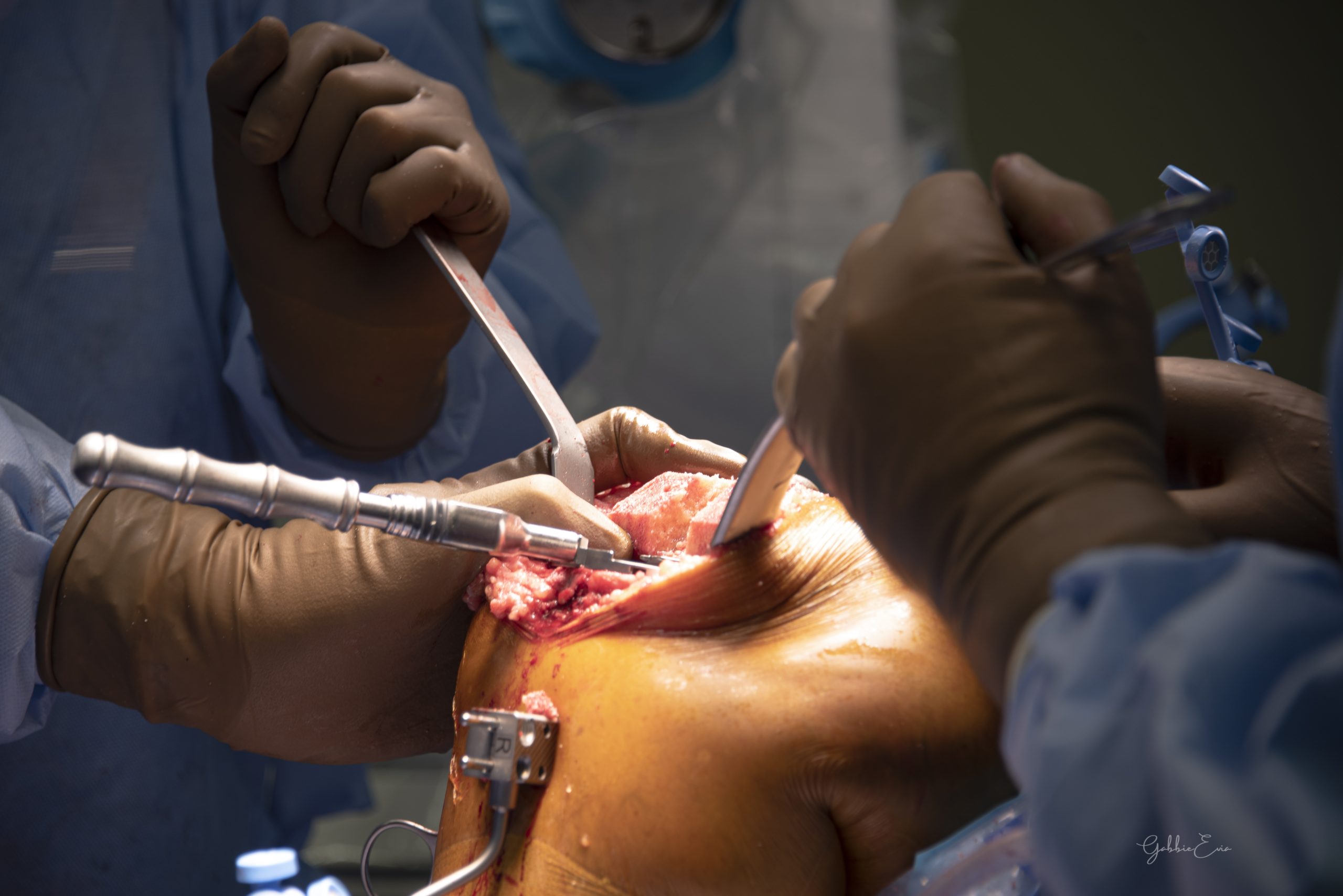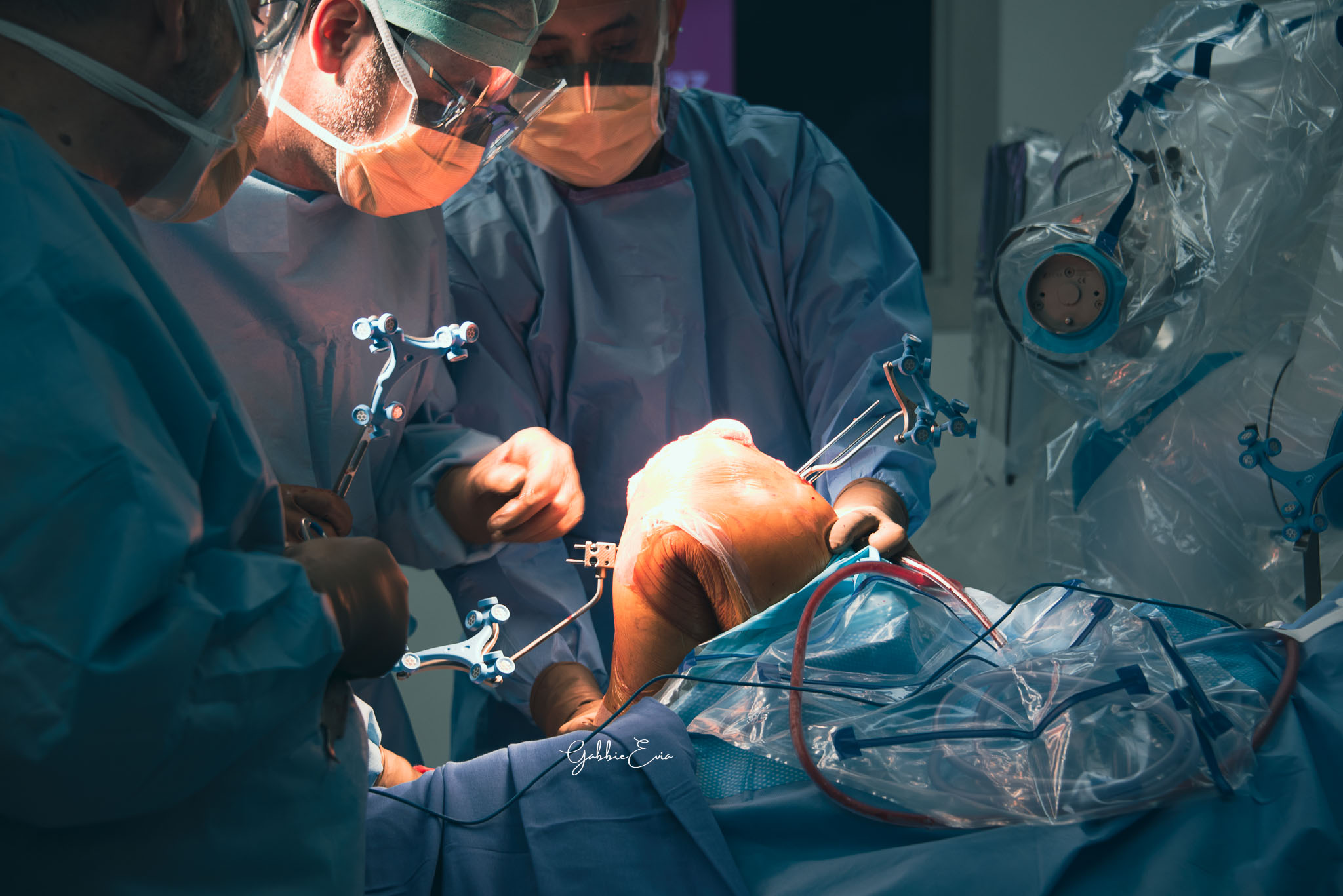 Trabajamos en conjunto con dos marcas de robots para asistir una cirugía de remplazo articular con base a la planeación y ejecución de la misma, que nos ayuda a tener una mejor precisión y mejora los tiempos de cirugía así como la recuperación del paciente, previamente programado y manejado por los médicos: