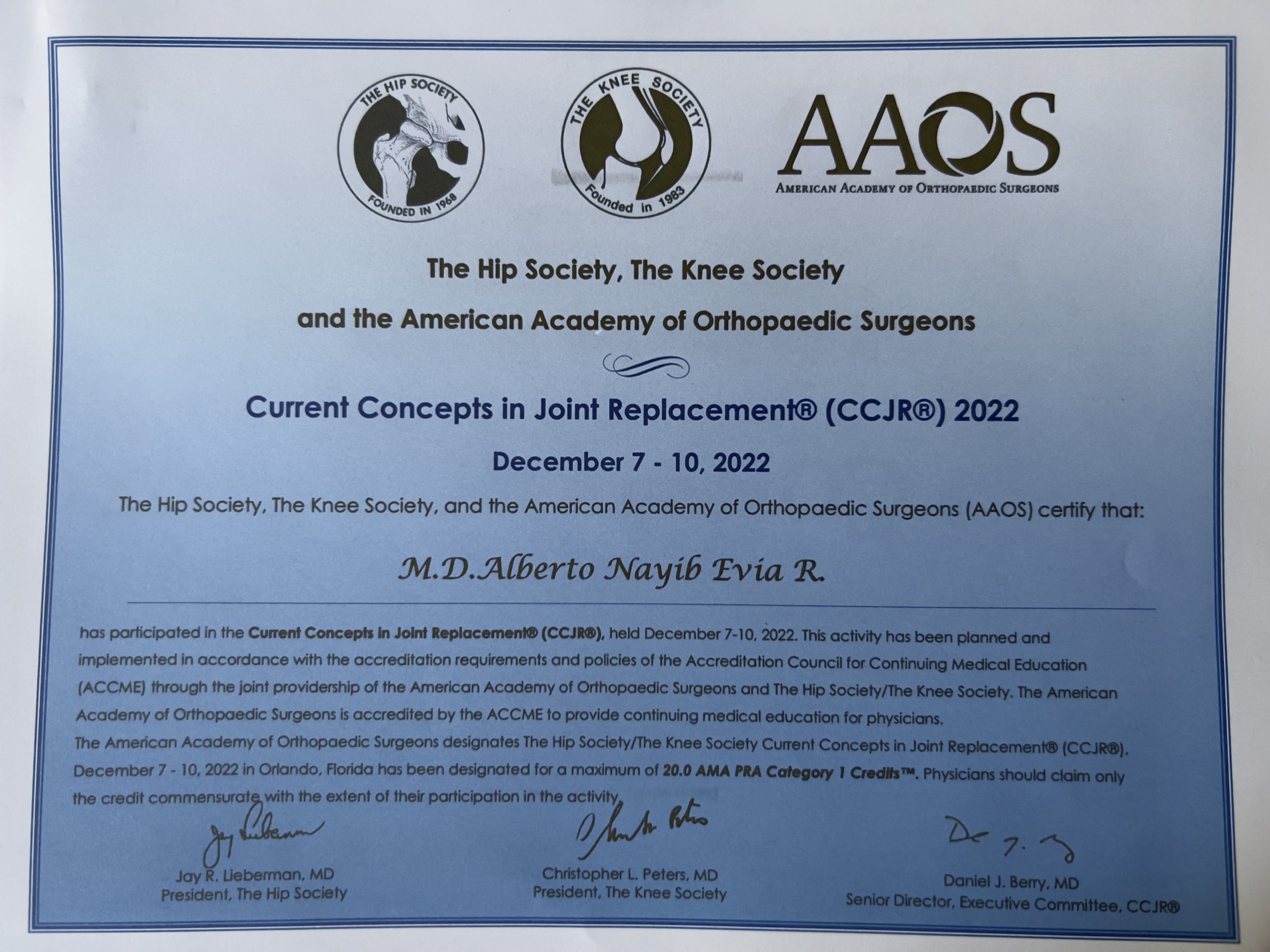 Cirugías de remplazo de rodilla y cadera, casos de éxito, cirugía articular robótica, cursos y talleres impartidos, entre otros.